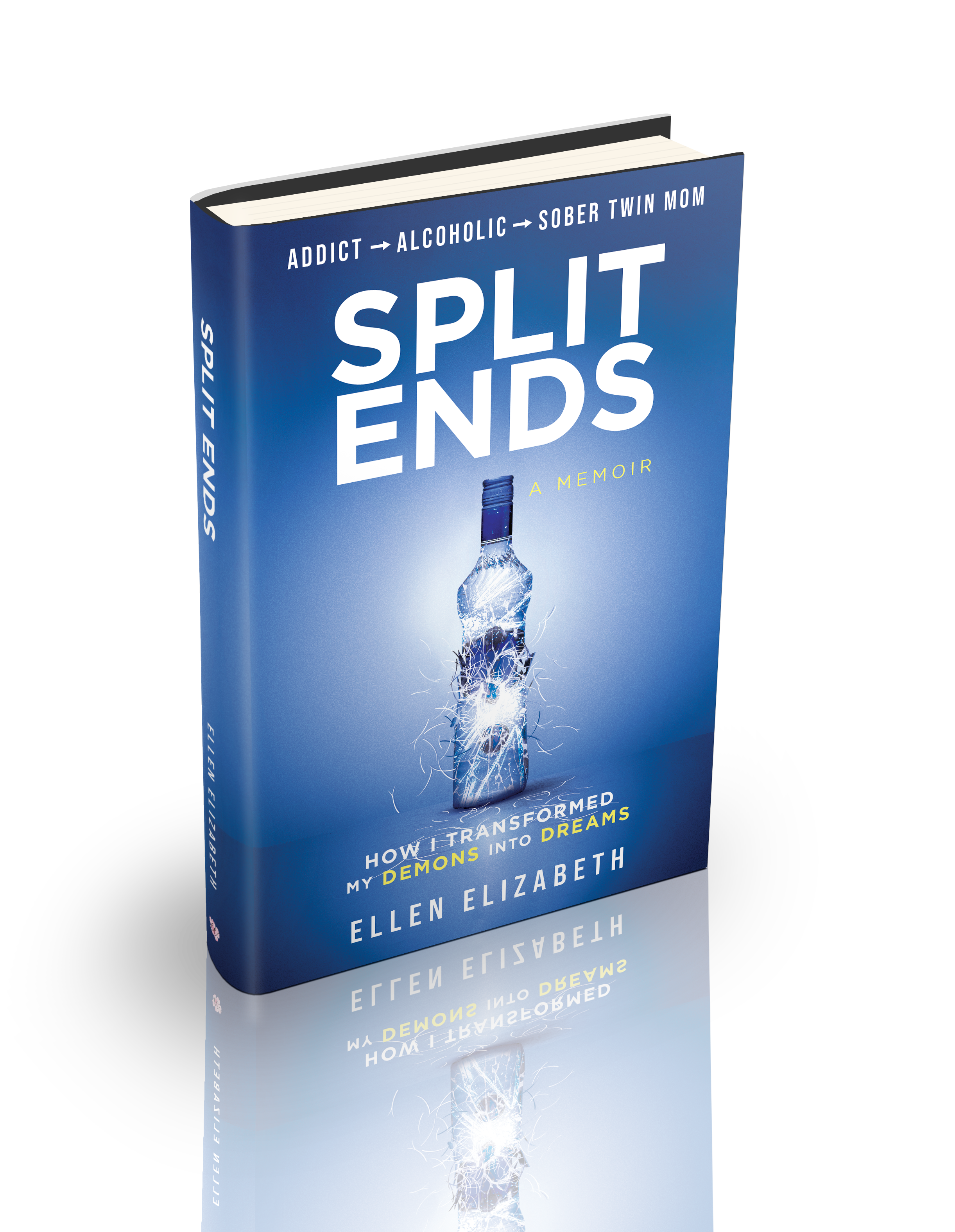 Split Ends is a compilation of true stories of addiction, abusive relationships, mental health struggles, infertility, and, finally, a mom of twins fighting to stay sober. Throughout the book, turmoil in Ellen’s life is described with a sound hair makes when it is pulled out. A toxic first love. Dink. Drug addiction. Rip. High-functioning alcoholism. Shred. Infertility. Dink. Rehab. Rip. 9-11 calls for her son. Shred.